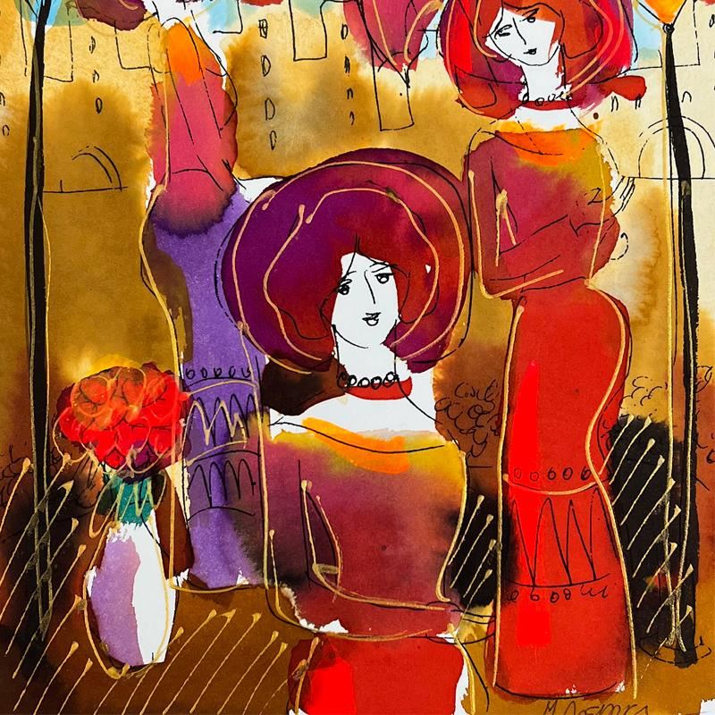 This is an original mixed media watercolor painting on paper by Moshe Leider. Hand signed by the artist, this piece comes custom framed and includes a Letter of Authenticity. Measures approximately 16" x 15" (frame), 9" x 8" (image).