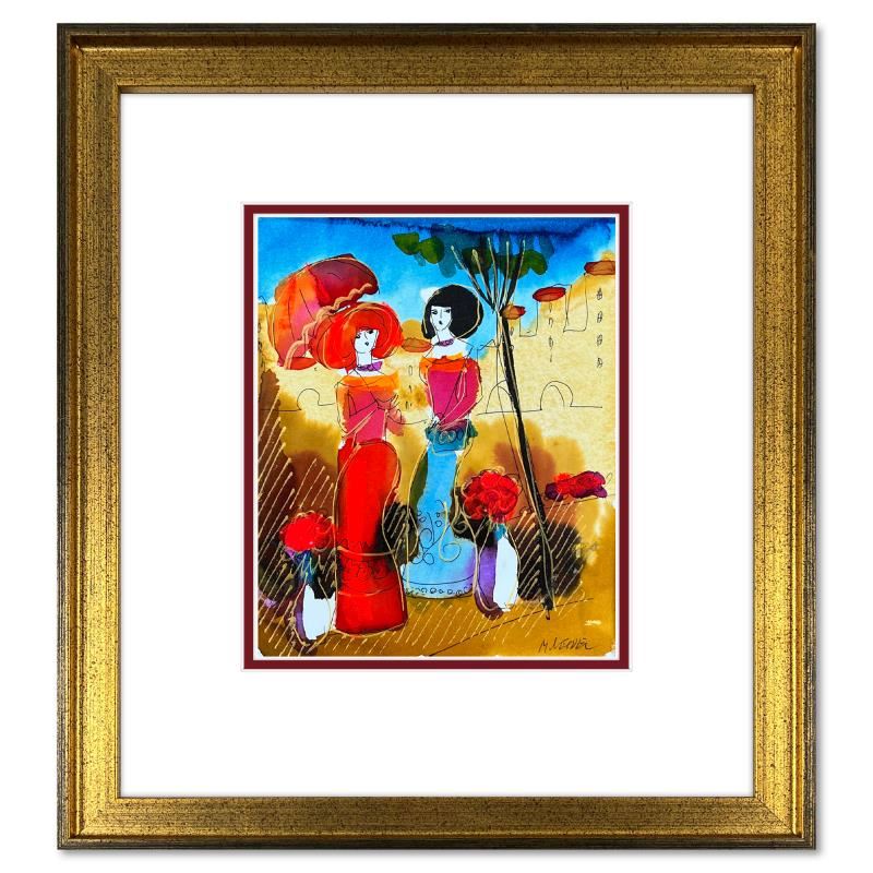 This is an original mixed media watercolor painting on paper by Moshe Leider. Hand signed by the artist, this piece comes custom framed and includes a Letter of Authenticity. Measures approximately 16" x 15" (frame), 9" x 8" (image).