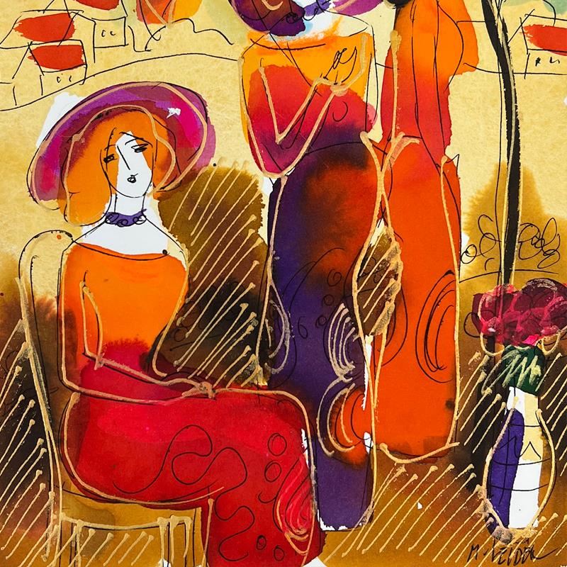 This is an original mixed media watercolor painting on paper by Moshe Leider. Hand signed by the artist, this piece comes custom framed and includes a Letter of Authenticity. Measures approximately 16" x 15" (frame), 9" x 8" (image).
