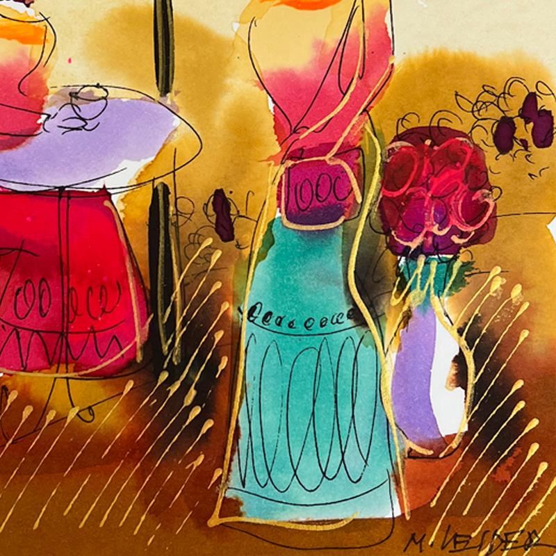 Untitled by Leider Original. Please see photos and description for all available information. This is an original mixed media watercolor painting on paper by Moshe Leider. Hand signed by the artist, this piece comes custom framed and includes a Letter of Authenticity. Measures approximately 15" x 13.5" (frame), 8" x 6.5" (image).