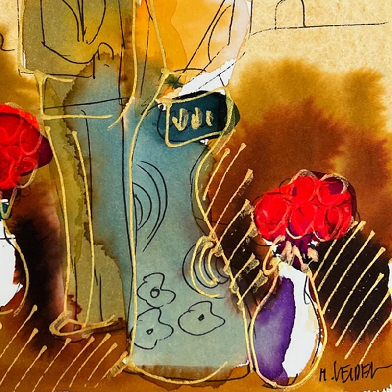 Untitled by Leider Original. Please see photos and description for all available information. This is an original mixed media watercolor painting on paper by Moshe Leider. Hand signed by the artist, this piece comes custom framed and includes a Letter of Authenticity. Measures approximately 15" x 13.5" (frame), 8" x 6.5" (image).