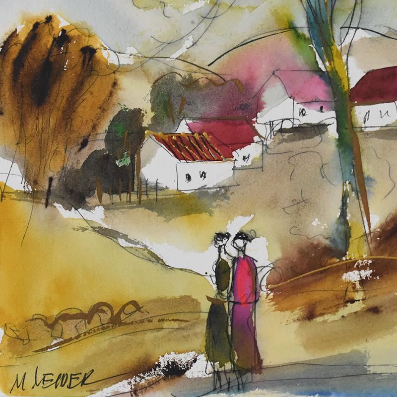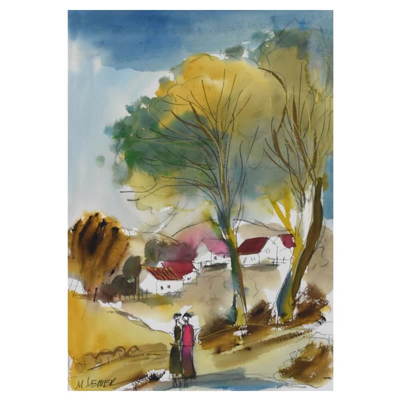 Untitled by Leider Original. All available information is listed in the description and shown in the photo. This is an original mixed media watercolor painting on paper by Moshe Leider, hand signed by the artist. This piece comes custom framed. Includes L