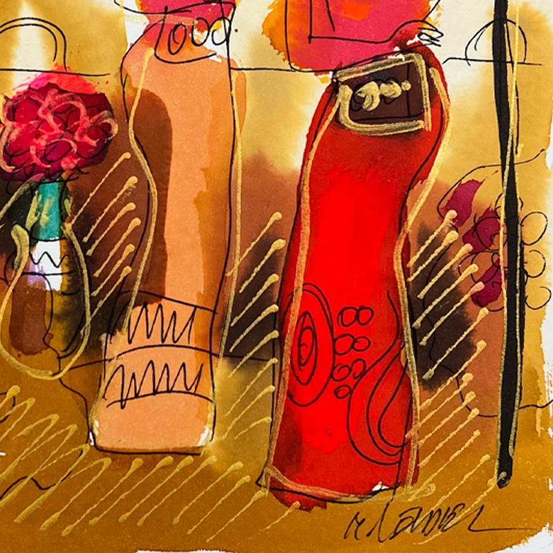 This is an original mixed media watercolor painting on paper by Moshe Leider. Hand signed by the artist, this piece comes custom framed and includes a Letter of Authenticity. Measures approximately 15" x 13.5" (frame), 8" x 6.5" (image).