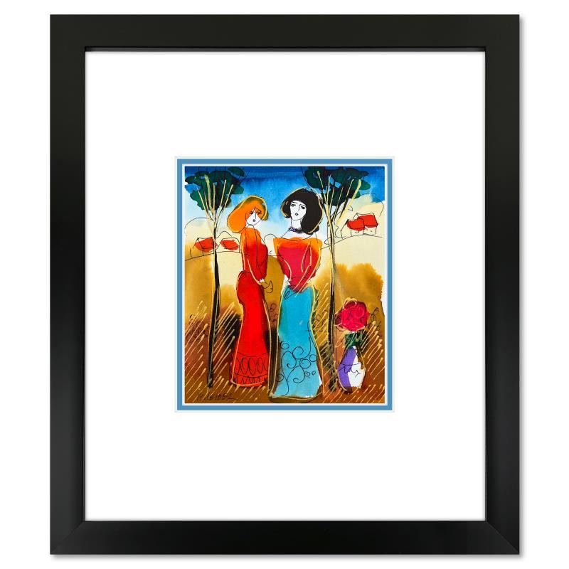 This is an original mixed media watercolor painting on paper by Moshe Leider. Hand signed by the artist, this piece comes custom framed and includes a Letter of Authenticity. Measures approximately 15" x 13.5" (frame), 8" x 6.5" (image).