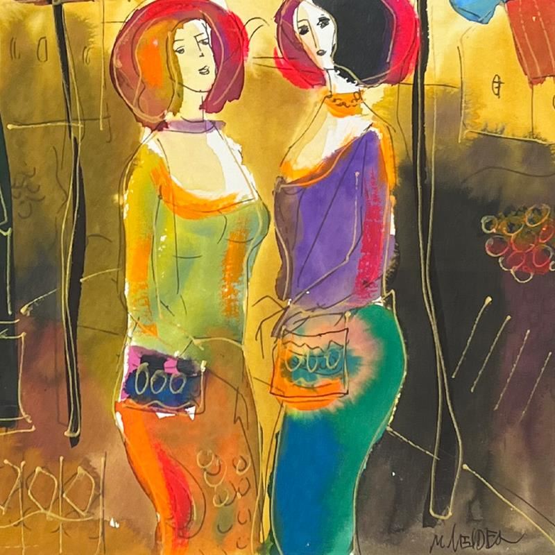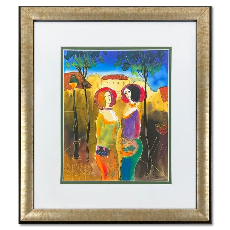 This is an original mixed media watercolor painting on paper by Moshe Leider, hand signed by the artist. This piece comes custom framed and includes a Letter of Authenticity. Measures approximately 18" x 16" (frame), 11.5" x 8.5" (image).