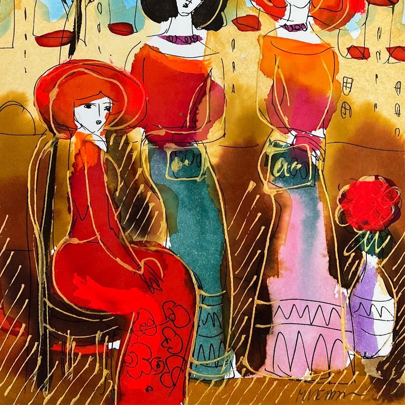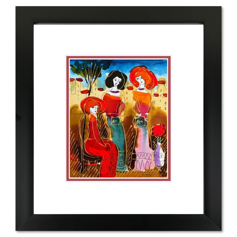 This is an original mixed media watercolor painting on paper by Moshe Leider. Hand signed by the artist, this piece comes custom framed and includes a Letter of Authenticity. Measures approximately 16" x 15" (frame), 9" x 8" (image).