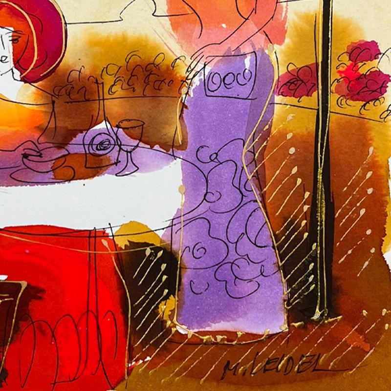 This is an original mixed media watercolor painting on paper by Moshe Leider. Hand signed by the artist, this piece comes custom framed and includes a Letter of Authenticity. Measures approximately 15" x 13.5" (frame), 8" x 6.5" (image).