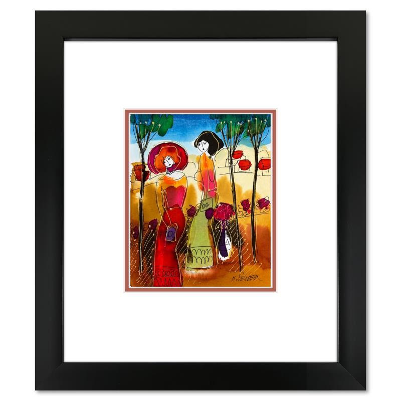 This is an original mixed media watercolor painting on paper by Moshe Leider. Hand signed by the artist, this piece comes custom framed and includes a Letter of Authenticity. Measures approximately 15" x 13.5" (frame), 8" x 6.5" (image).
