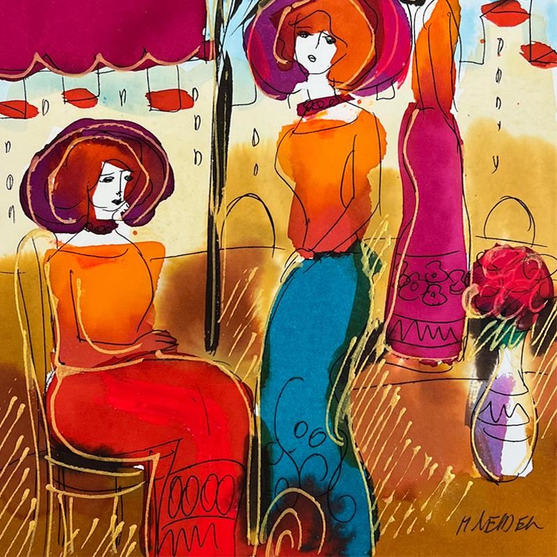 This is an original mixed media watercolor painting on paper by Moshe Leider. Hand signed by the artist, this piece comes custom framed and includes a Letter of Authenticity. Measures approximately 16" x 15" (frame), 9" x 8" (image).
