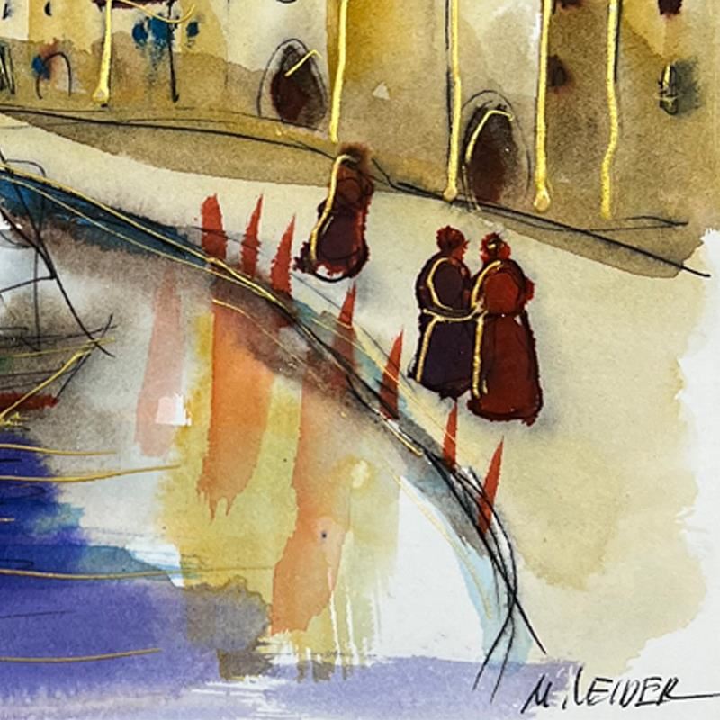 This is an original mixed media watercolor painting on paper by Moshe Leider. Hand signed by the artist, this piece comes custom framed and includes a Letter of Authenticity. Measures approximately 15" x 17" (frame), 8" x 10" (image).