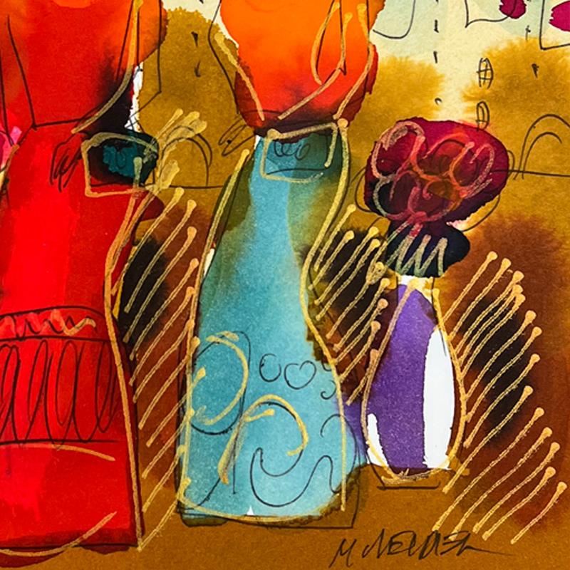This is an original mixed media watercolor painting on paper by Moshe Leider. Hand signed by the artist, this piece comes custom framed and includes a Letter of Authenticity. Measures approximately 15" x 13.5" (frame), 8" x 6.5" (image).