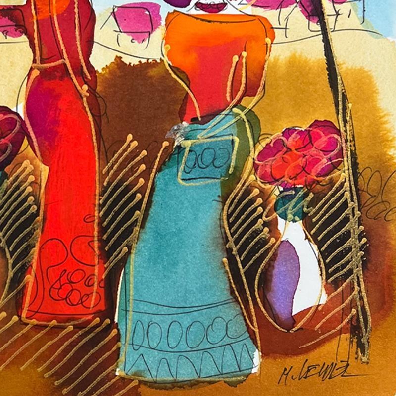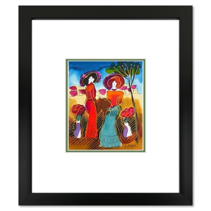 This is an original mixed media watercolor painting on paper by Moshe Leider. Hand signed by the artist, this piece comes custom framed and includes a Letter of Authenticity. Measures approximately 15" x 13.5" (frame), 8" x 6.5" (image).