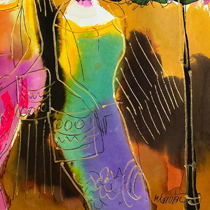 This is an original mixed media watercolor painting on paper by Moshe Leider. Hand signed by the artist, this piece comes custom framed and includes a Letter of Authenticity. Measures approximately 18.5" x 16" (frame), 14" x 10" (image).