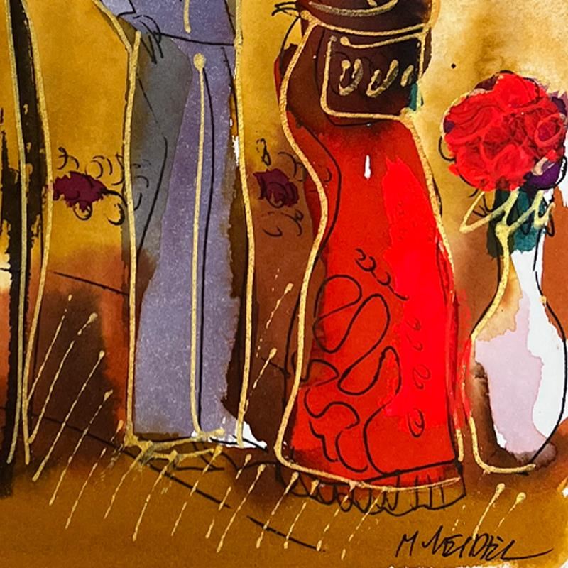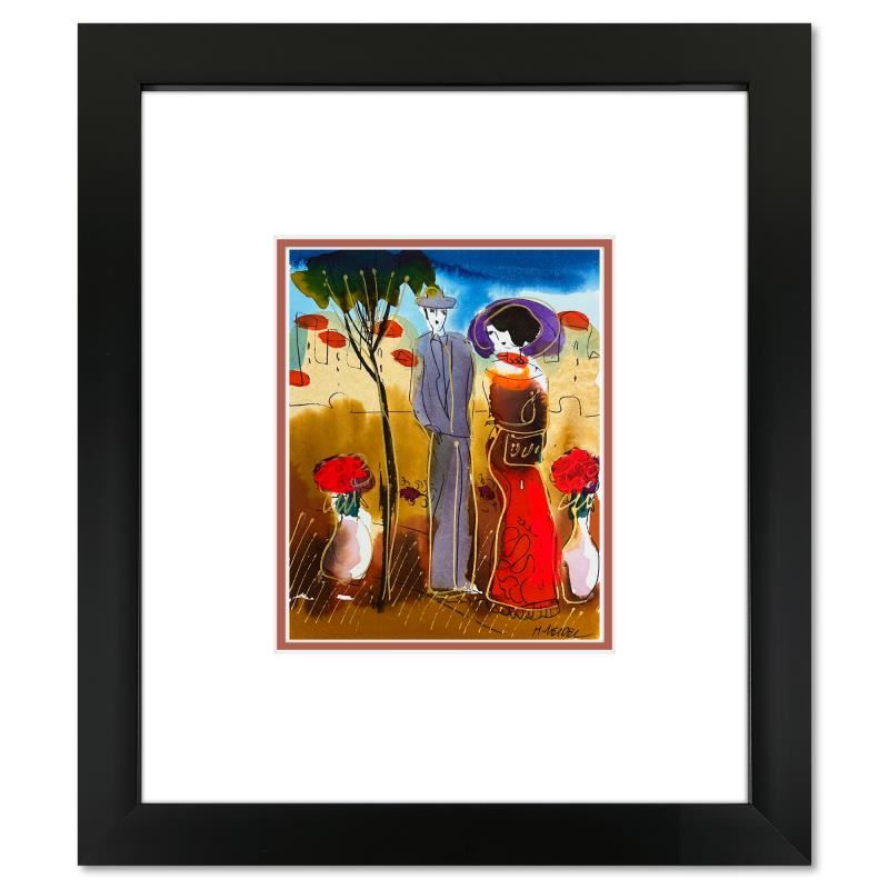 This is an original mixed media watercolor painting on paper by Moshe Leider. Hand signed by the artist, this piece comes custom framed and includes a Letter of Authenticity. Measures approximately 15" x 13.5" (frame), 8" x 6.5" (image).