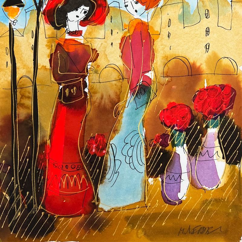 This is an original mixed media watercolor painting on paper by Moshe Leider. Hand signed by the artist, this piece comes custom framed and includes a Letter of Authenticity. Measures approximately 16 x 15 (frame), 9 x 8 (image).