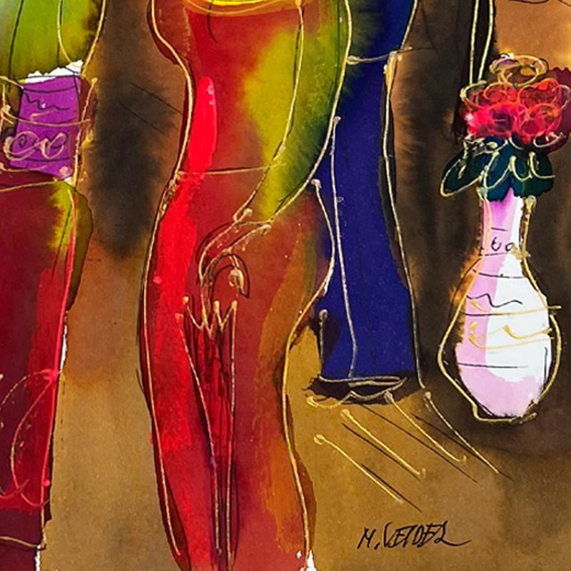 This is an original mixed media watercolor painting on paper by Moshe Leider. Hand signed by the artist, this piece comes custom framed and includes a Letter of Authenticity. Measures approximately 18.5 x 16 (frame), 12 x 8.5 (image).