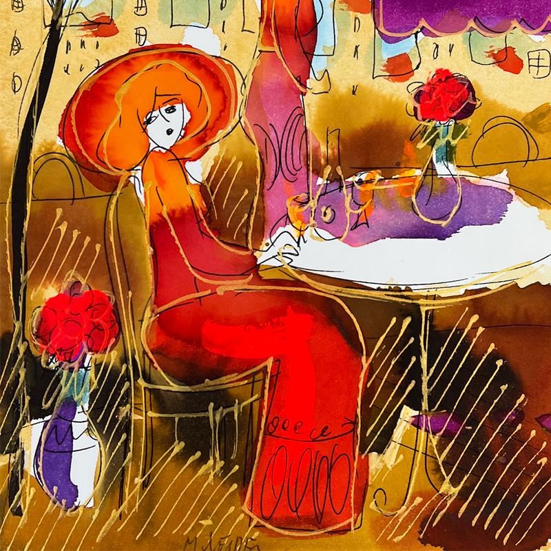 This is an original mixed media watercolor painting on paper by Moshe Leider. Hand signed by the artist, this piece comes custom framed and includes a Letter of Authenticity. Measures approximately 16 x 15 (frame), 9 x 8 (image).