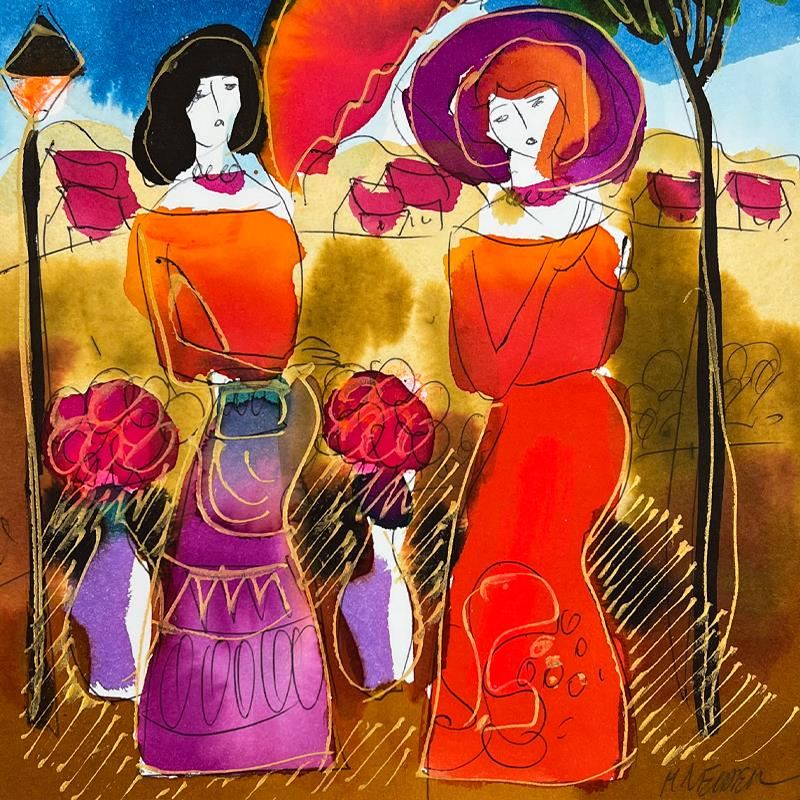 This is an original mixed media watercolor painting on paper by Moshe Leider. Hand signed by the artist, this piece comes custom framed and includes a Letter of Authenticity. Measures approximately 16" x 15" (frame), 9" x 8" (image).