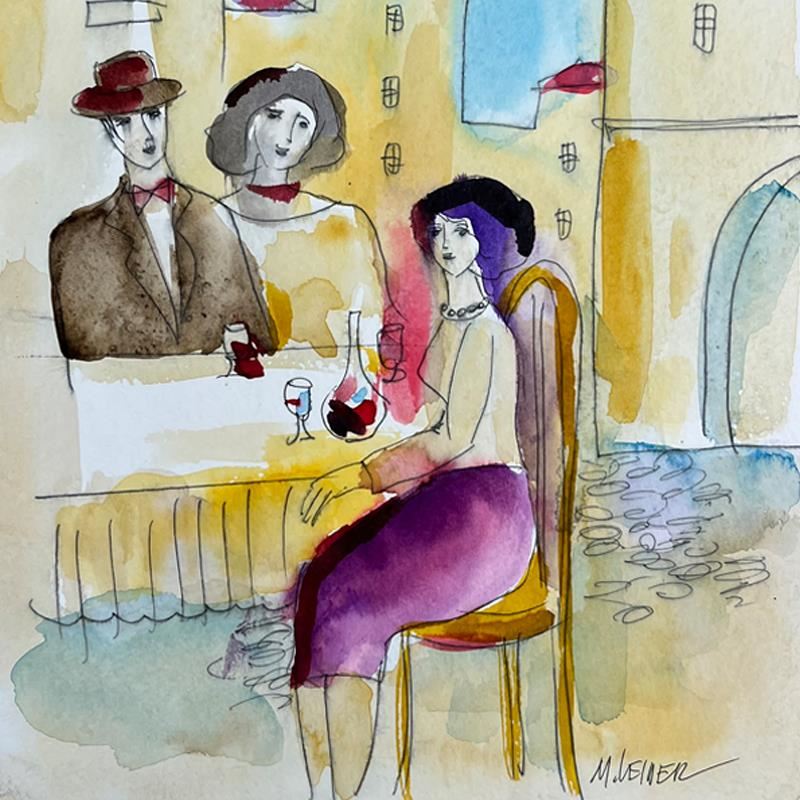 This is an original mixed media watercolor painting on paper by Moshe Leider. Hand signed by the artist, this piece comes custom framed and includes a Letter of Authenticity. Measures approximately 18.5" x 16" (frame), 12" x 8" (image).