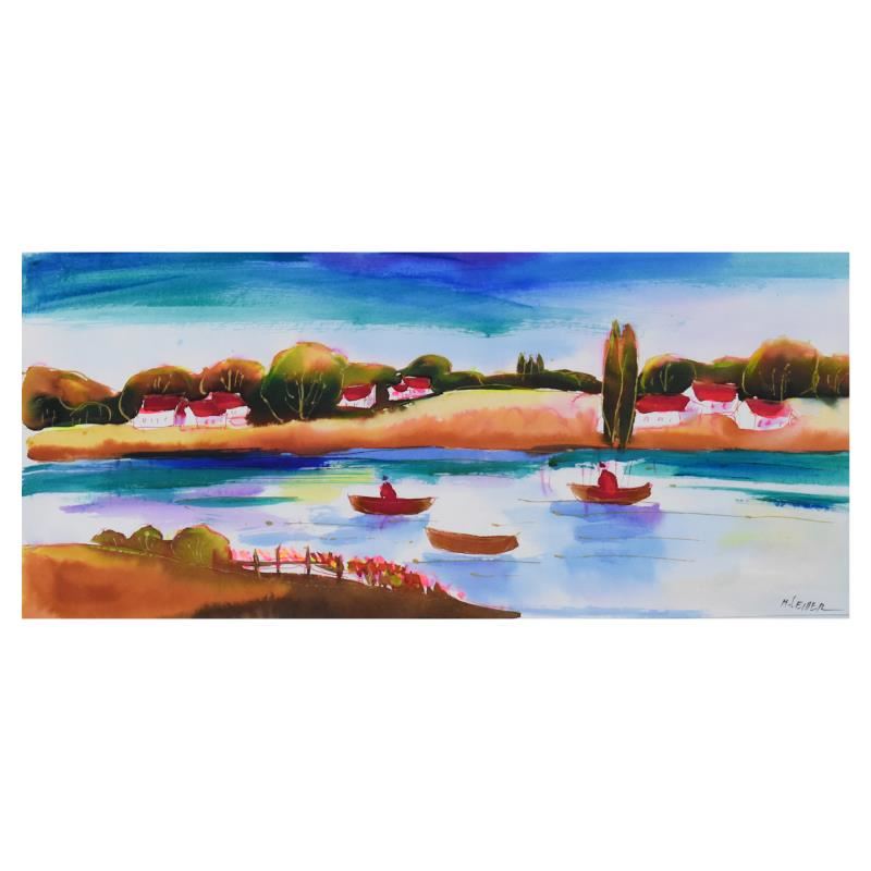This is an original mixed media watercolor painting on paper by Moshe Leider, hand signed by the artist. This piece comes custom framed. Includes Letter of Authenticity. Measures approx. 27" x 16.5" (frame), 19" x 8.5" (image).