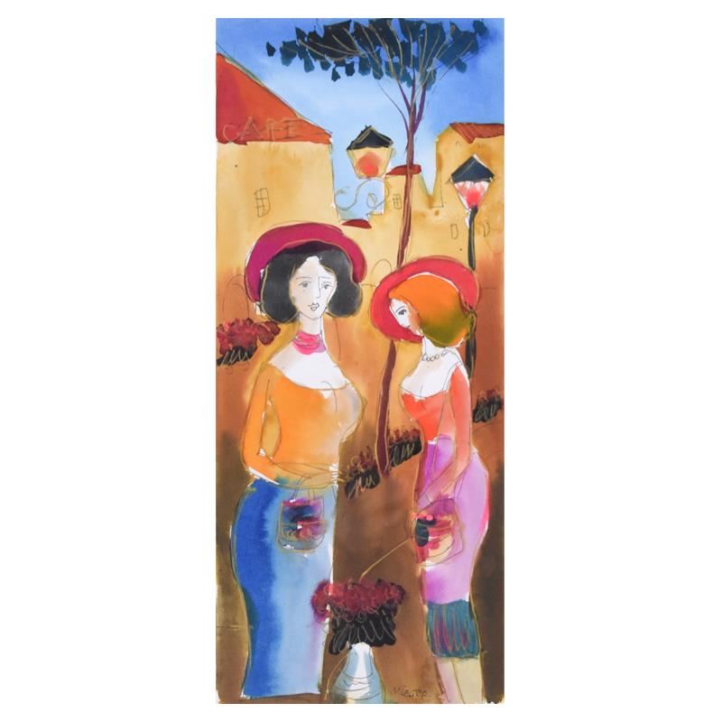 This is an original mixed media watercolor painting on paper by Moshe Leider, hand signed by the artist. This piece comes custom framed. Includes Letter of Authenticity. Measures approx. 16" x 25.5" (frame), 7" x 16.5" (image).