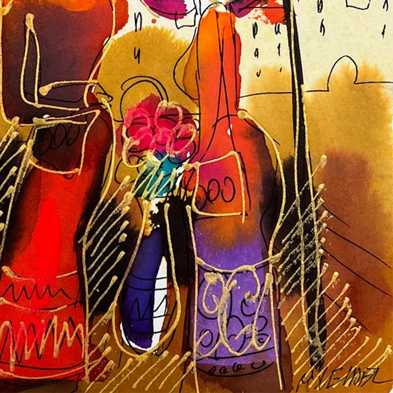 This is an original mixed media watercolor painting on paper by Moshe Leider. Hand signed by the artist, this piece comes custom framed and includes a Letter of Authenticity. Measures approximately 15" x 13.5" (frame), 8" x 6.5" (image).