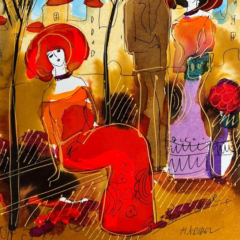 This is an original mixed media watercolor painting on paper by Moshe Leider. Hand signed by the artist, this piece comes custom framed and includes a Letter of Authenticity. Measures approximately 16" x 15" (frame), 9" x 8" (image). This item requires special handling and may have a longer than usual turnaround.