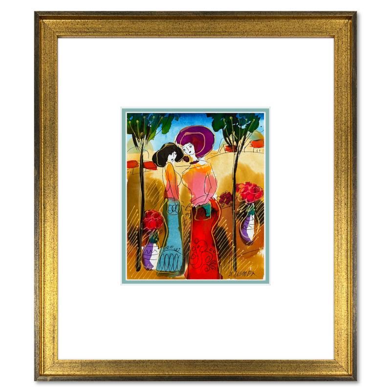 This is an original mixed media watercolor painting on paper by Moshe Leider. Hand signed by the artist, this piece comes custom framed and includes a Letter of Authenticity. Measures approximately 15" x 13.5" (frame), 8" x 6.5" (image). This item requires special handling and may have a longer than usual turnaround.