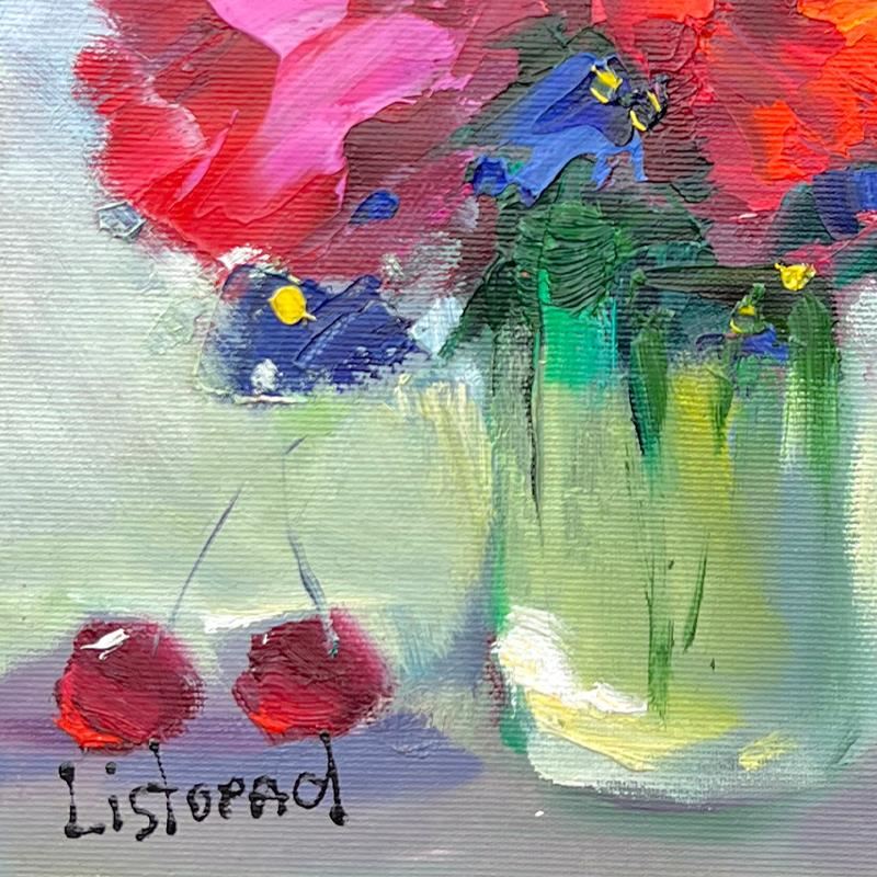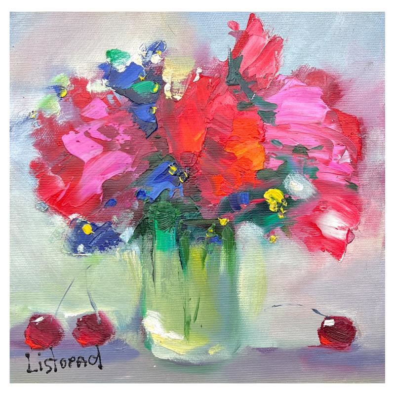 This is an untitled original painting, acrylic on canvas by Natalya Listopad. It is hand signed by the artist and comes with a letter of authenticity. Measures approximately 10" x 10" (image).