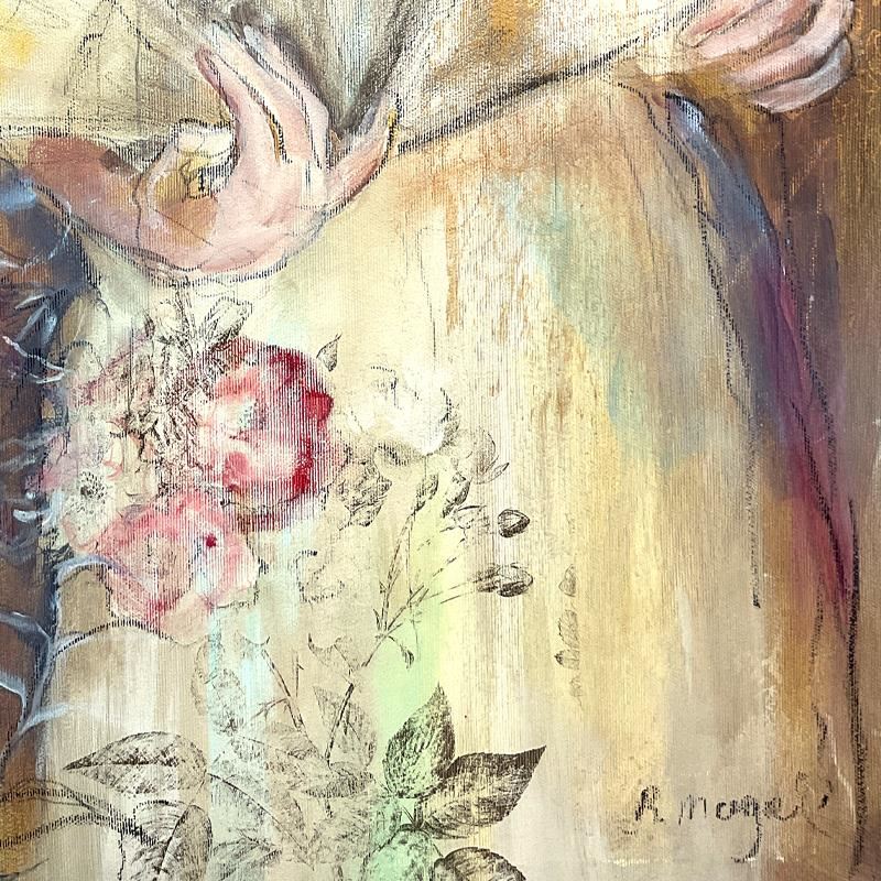 This is an original acrylic painting on canvas by Batia Magal, hand signed by the artist. Includes Letter of Authenticity. Measures approx. 36" x 27" (image).