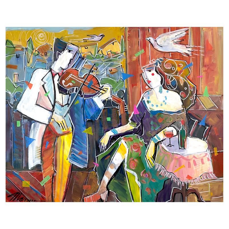 This is an original acrylic painting on canvas by Isaac Maimon, hand signed by the artist. Includes Letter of Authenticity. Measures approx. 30" x 24" (image).