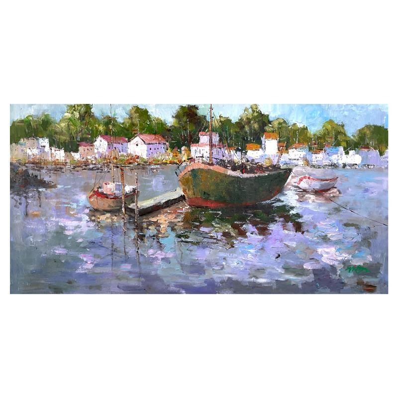 This is an original oil painting on canvas by Mani, hand signed by the artist. Includes Letter of Authenticity. Measures approx. 26" x 50" (image).