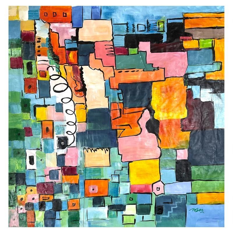This is an original oil painting on canvas by Mani, hand signed by the artist. Includes Letter of Authenticity. Measures approx. 48" x 47" (image).