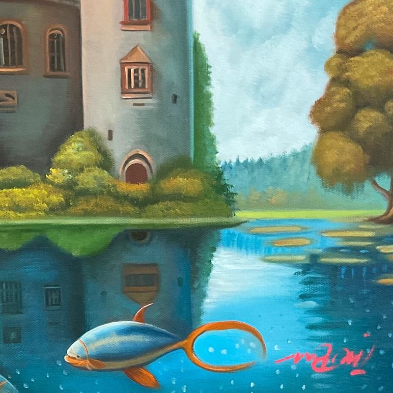 This is an original acrylic painting on canvas by Mani, hand signed by the artist. Includes Letter of Authenticity. Measures approx. 20" x 30" (image).