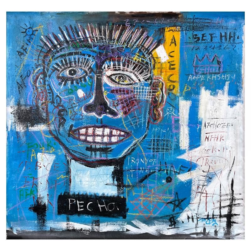 This is an original acrylic painting on canvas by Mani, hand signed by the artist. Includes Letter of Authenticity. Measures approx. 38" x 38" (image).