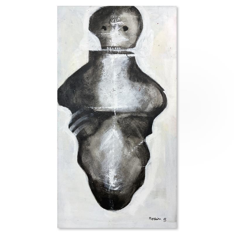This is an original painting on stretched canvas by Milton Berwin (1925-2023), dated 2003 and hand signed by the artist. Includes Letter of Authenticity. Measures approx. 30" x 16" (image).