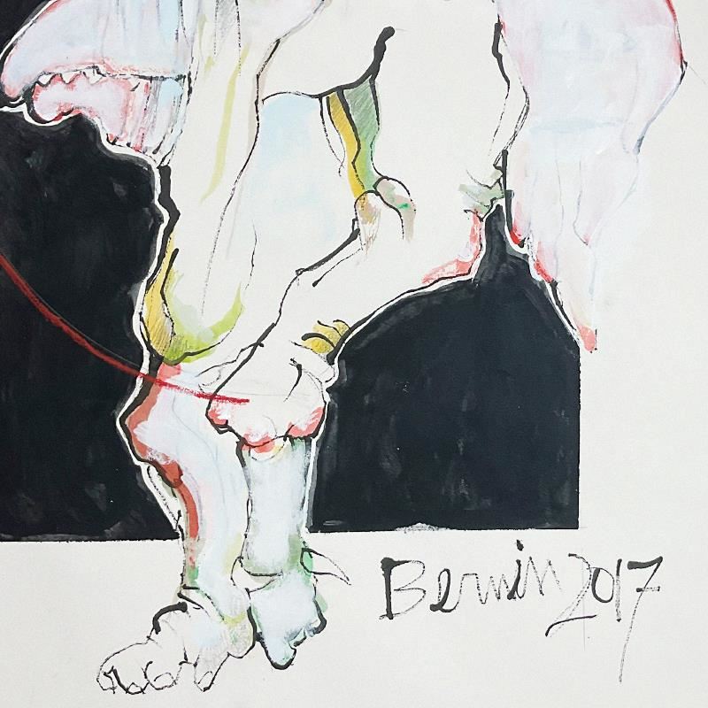 This is an original painting on paper by Milton Berwin (1925-2023), hand signed by the artist. Includes Letter of Authenticity. Measures approx. 22" x 30" (image).