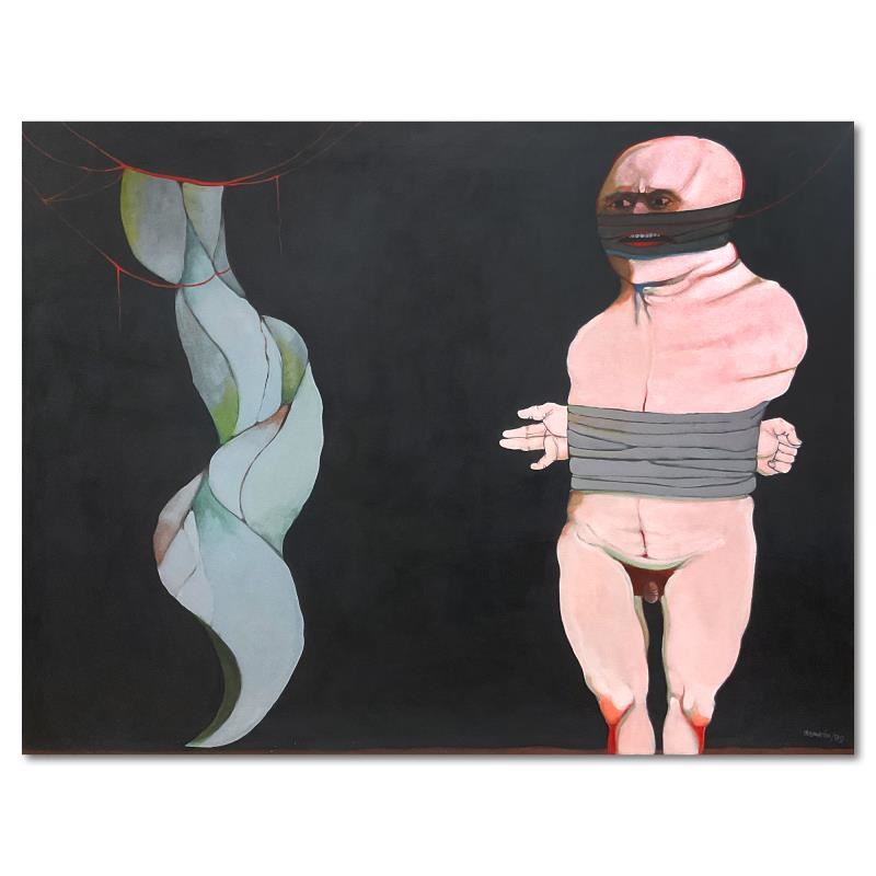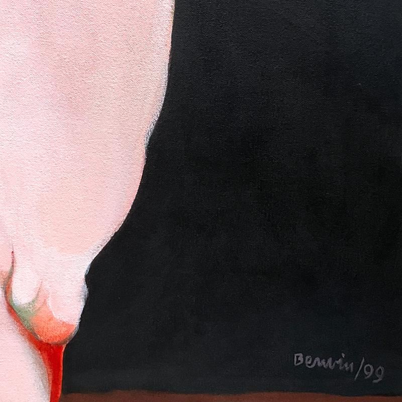 This is an original painting on stretched canvas by Milton Berwin (1925-2023), dated 1999 and hand signed by the artist. Includes Letter of Authenticity. Measures approx. 50" x 66" (image). There is a small faint scuff on the top-right part of the canvas.