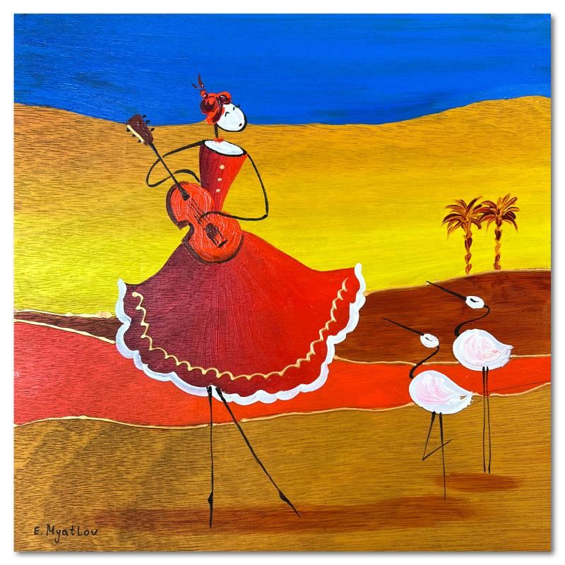 Untitled by Myatlov Original. All available information is listed in the description and shown in the photo. This is an original painting oil on wood panel by Ester Myatlov. Hand signed by the artist, this piece comes with a letter of authenticity. Measur
