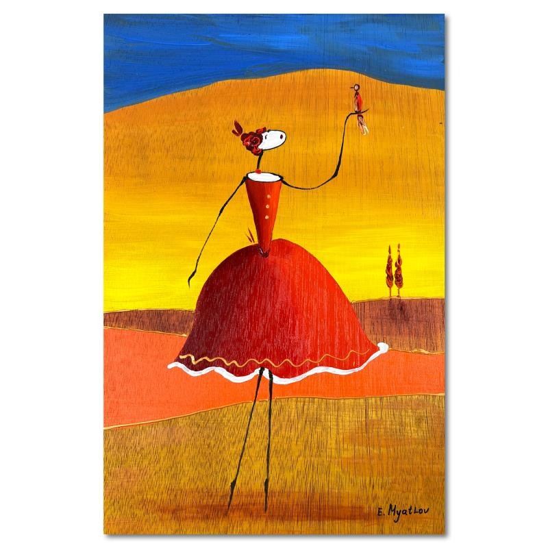 This is an original painting oil on wood panel by Ester Myatlov. Hand signed by the artist, this piece comes with a letter of authenticity. Measures approximately 12" x 8" (image).