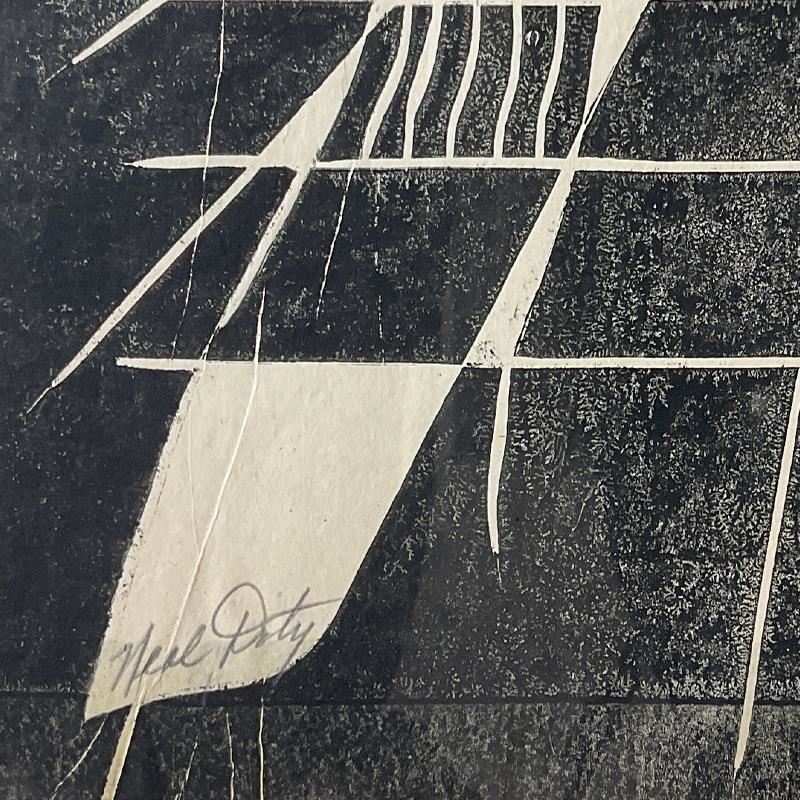 This is a one-of-a-kind linocut on paper by Neal Doty (1941-2016), hand signed by the artist. This piece comes custom framed. Includes Letter of Authenticity. Measures approx. 23.5" x 30" (frame), 16" x 22" (image).