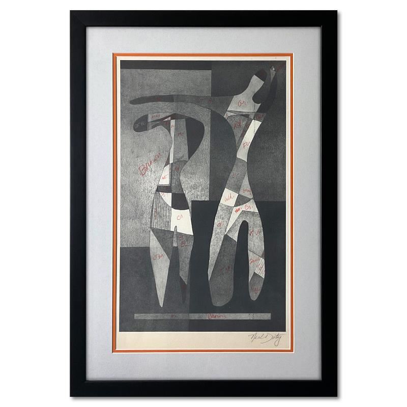 This is a one-of-a-kind monoprint on paper by Neal Doty (1941-2016), hand signed by the artist. This piece is a draft for mapping out a color scheme for future prints. This piece comes custom framed. Includes Letter of Authenticity. Measures approx. 20.5" x 29.5" (frame), 12.5" x 20.5" (image).