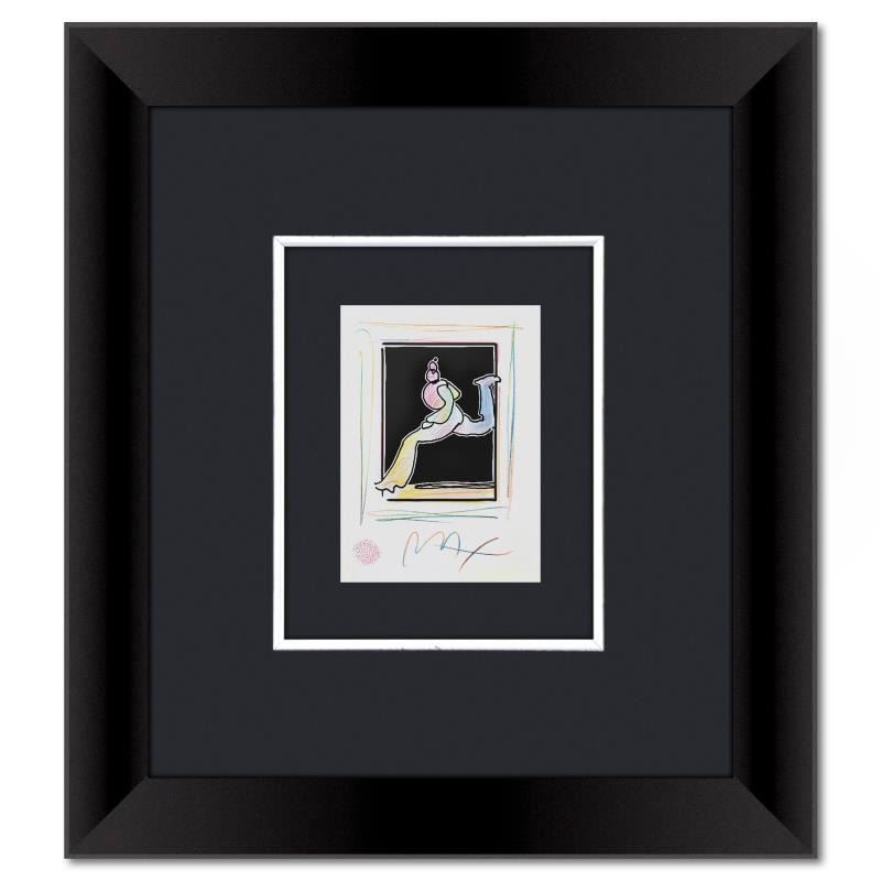 This is a one-of-a-kind mixed media on paper, hand signed by Peter Max. The piece comes custom framed with a backside cutout to display Peter Max Studio registration number 372295 certifying authenticity. Measures approximately 22.5" x 20" (frame), 8.5" x 6" (image). This item requires special handling and may have a longer than usual turnaround.