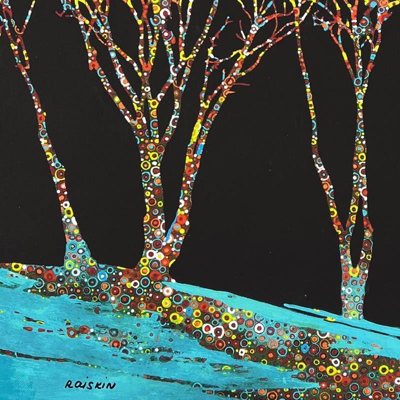 This is an untitled limited edition on canvas by Marina Raiskin. The piece is hand signed by the artist and accompanied by a letter of authenticity. Measures approximately 23" x 22".