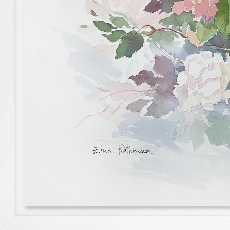 This is an untitled original painting on paper by Zina Roitman. The piece is hand signed, framed, and comes with a letter of authenticity. Measures approximately 26.5" x 34" (framed), 22.5" x 30" (sheet). This item requires special handling and may have a longer than usual turnaround.