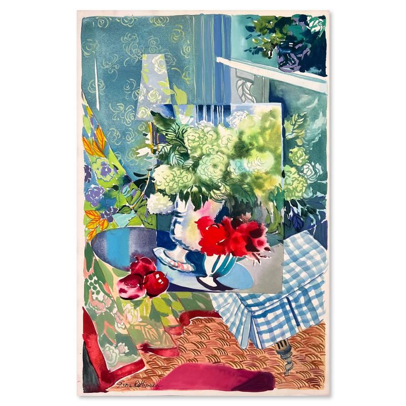 This is an untitled original painting on paper by Zina Roitman. The piece is hand signed and comes with a letter of authenticity. Measures approximately 23.5" x 16".