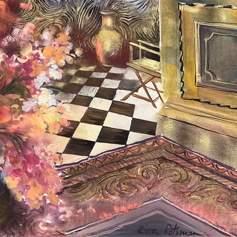This is an untitled original painting on paper by Zina Roitman. The piece is hand signed and comes with a letter of authenticity. Measures approximately 37" x 28".