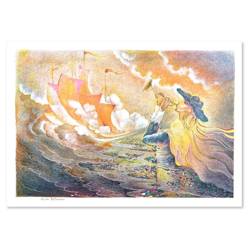 This is a limited edition serigraph on paper by Zina Roitman. The piece comes hand signed by the artist, numbered, and with a letter of authenticity. Measures approximately 12" x 18".