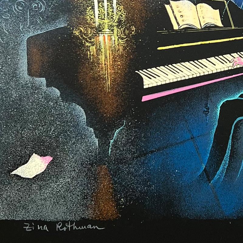 This is a limited edition serigraph on paper by Zina Roitman. The piece comes hand signed by the artist, numbered, and with a letter of authenticity. Measures approximately 13" x 17.5".