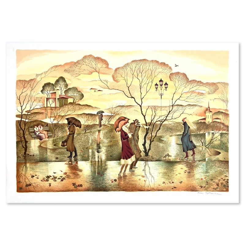 This is a limited edition serigraph on paper by Zina Roitman. The piece comes hand signed by the artist, numbered, and with a letter of authenticity. Measures approximately 17.5" x 26".
